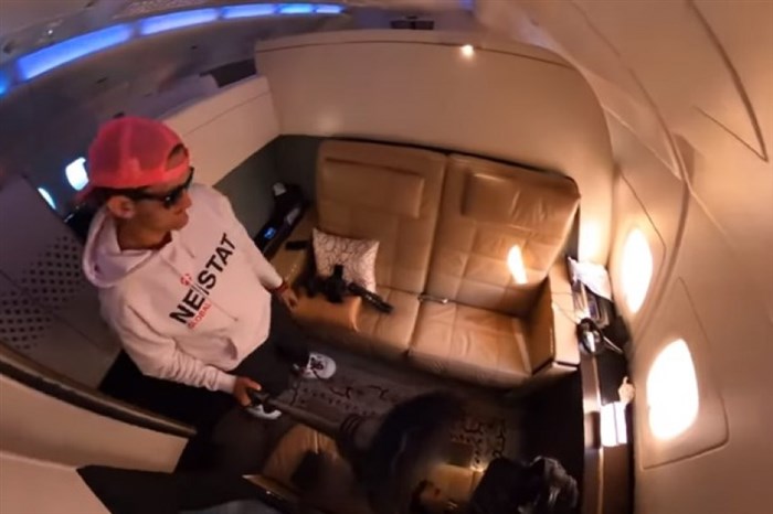 Во видеото кое го поставил на својот јујтуб канал, Неистат на своите 11.6 милиони следбеници ги воведува во Etihad A380, екстремно скапа приватна соба во авионот.