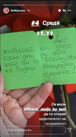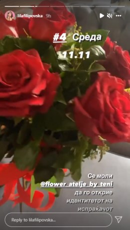 Македонската водителка Лила Филиповска има таен обожавател, кој ѝ испраќа романтични подароци. На својот Инстаграм профил таа се пофали од најновиот подарок кој го добила.