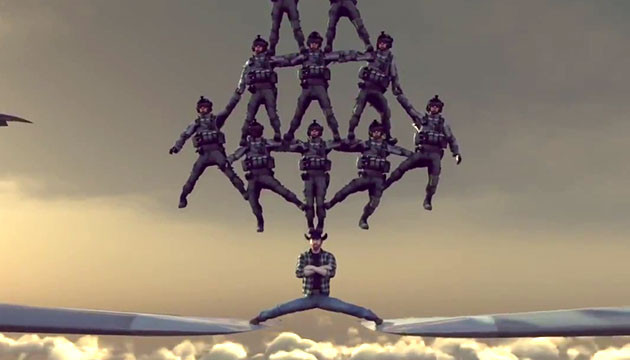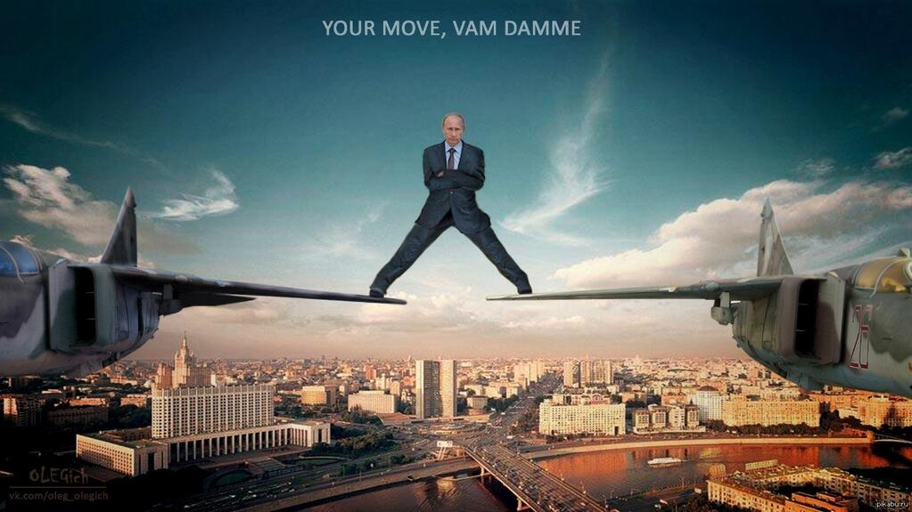 Жам Клод Ван Дам сними реклама на која прави шпага додека два камиони се движат. Но за да покажат дека подвигот на Ван Дам не е ништо посебно, Владимир Путин и Чак Норис го направија истото, но меѓу авиони во лет и го зголемија влогот (и употребата на специјални ефекти).